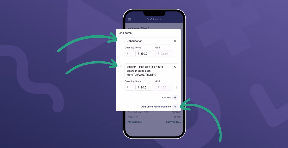 The price you list (excluding GST) should be for a single product/service. Hnry automatically calculates the total based on the quantity.