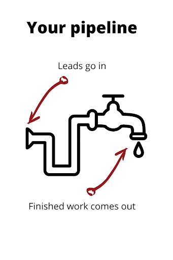 The sales pipeline is the key component of that system. It’s just a list of all the work and potential work you have on. It’s called a pipeline because you have potential projects on one end, and finished, paid-for work on the other.