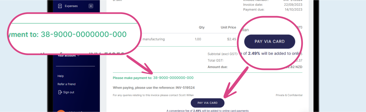 Your clients can use a range of options to pay a Hnry Invoice. We enable credit card payments, online payments, and bank transfers – it’s all no problem!