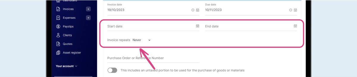For clients you work for regularly, you can create recurring invoices. It’ll keep things running smoothly, and give you just that bit more headspace to focus on the actual job. Find it under “Advanced Options”.
