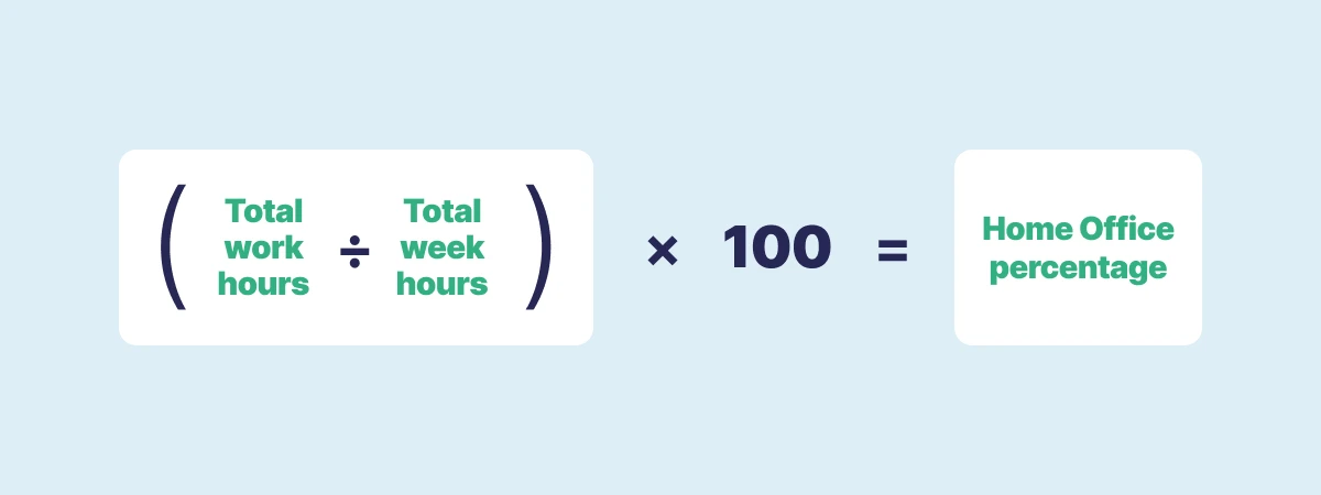Step 2: Then, you’ll need to record the time you spend working from home over a four week period. Divide your total working hours by the number of hours in a week (fun fact: there are 168), then multiply that number by 100. This will give you the business-usage percentage for your home office space.