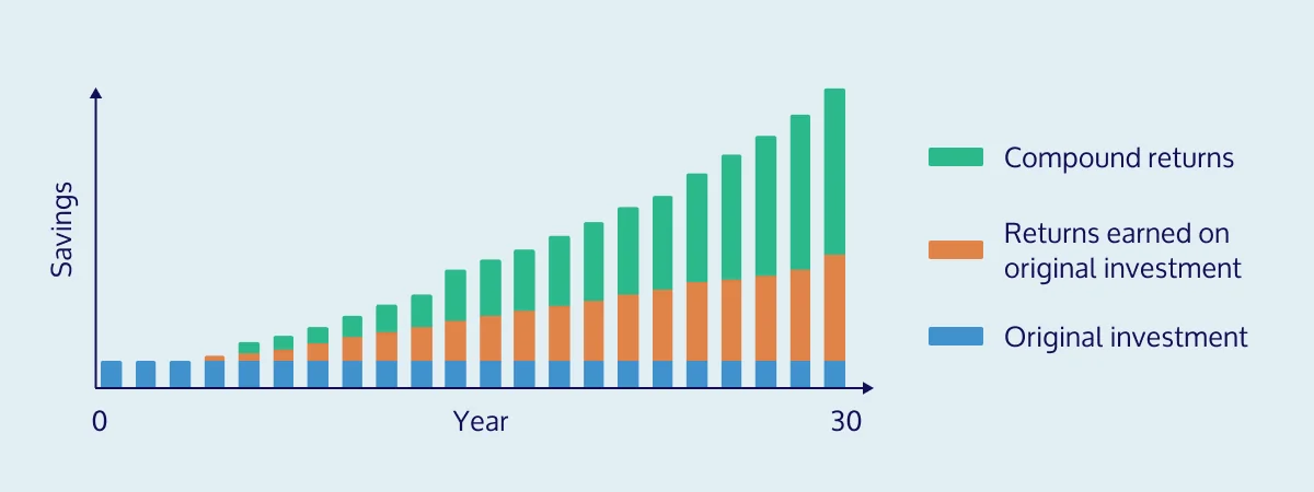 Another real benefit is the magic of compounding returns. Basically, when you invest in a KiwiSaver fund, you’ll ideally earn returns on the money you invest (there are no guarantees!). The returns are then added to the capital to be reinvested, allowing both to generate further returns.
