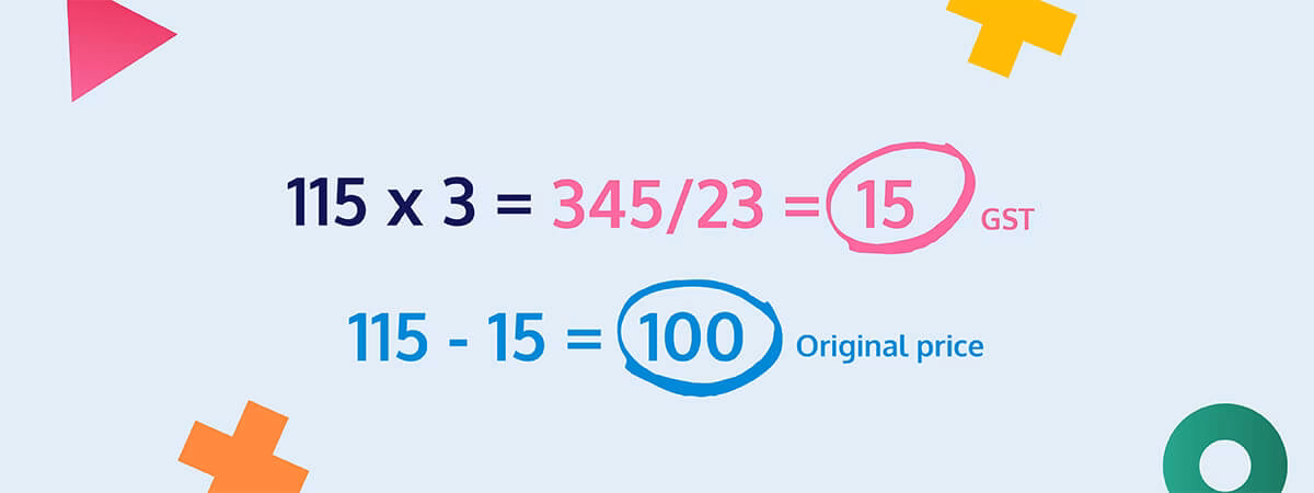 GST is a flat tax of 15% added to most goods and services sold by someone who is registered for GST. To add GST, you divide the original price by 100, multiply that number by 15, and then add that number on to the original price: