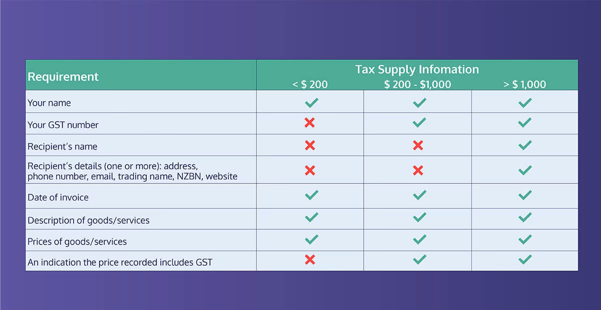 💡 If you’re GST registered, you’ll also have to provide your clients with “taxable supply information’’, which has to meet specific requirements. For more information, check out our ultimate guide to invoicing.